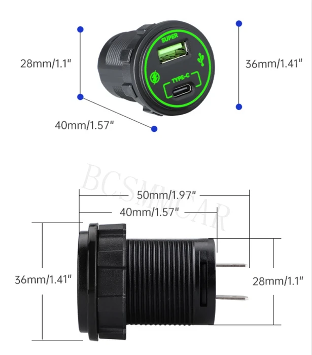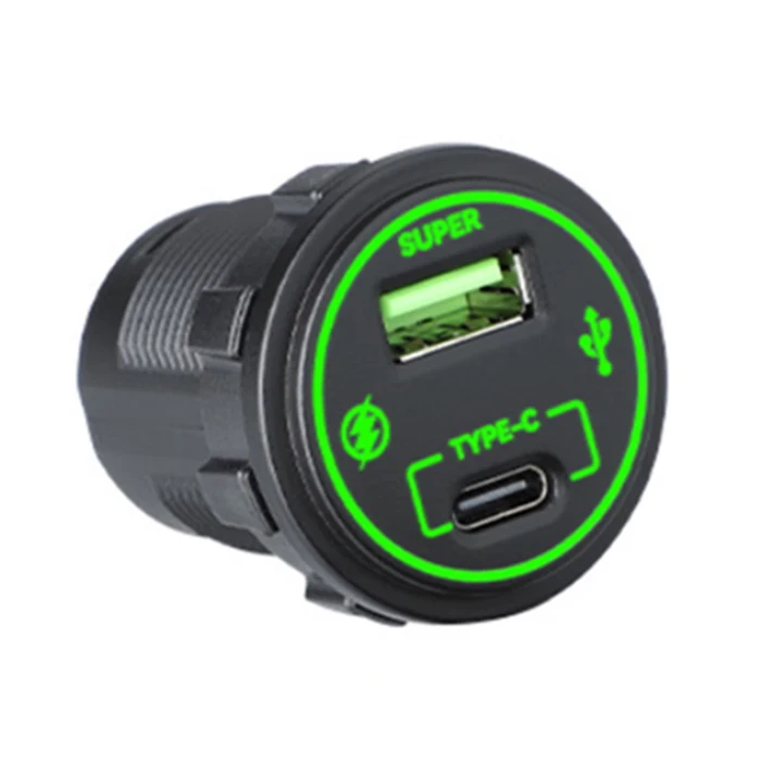 שקע טעינה סופר מהיר עגול קבוע לרכב 12-24V 3A USB + TYPE C