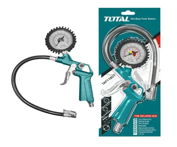 אקדח אוויר איכותי ומקצועי למילוי לחץ אוויר לצמיגים עם שעון 8.5 בר TOTAL