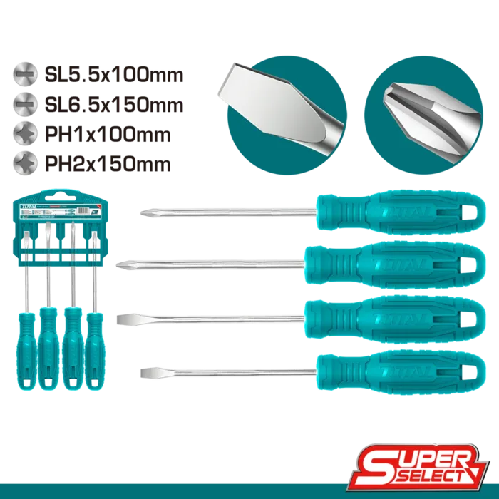 סט 4 מברגים TOTAL חומר פלדת כרום-ונדיום (Cr-V)